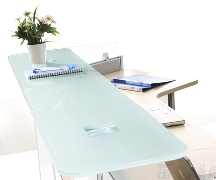 ※ 上图为细节展示图,有色钢化玻璃装饰,简洁而富现代感的外观,搭配多元化的桌面及配色设计,令空间富有灵动的变化。