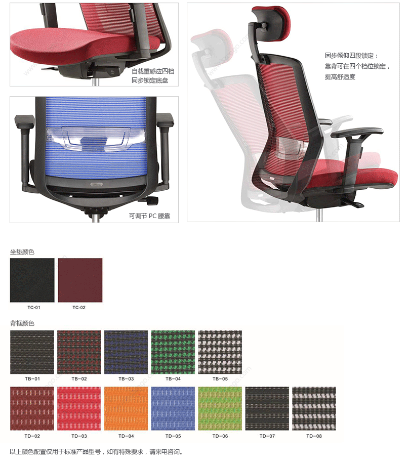 TA不仅是一张椅子,更是一个温柔的拥抱,优美设计有利于持久的舒适和美感。工学椅的结构和功能利用同步倾仰底盘控制功能锁定,滑座和高度调节。高度和角度均可调的扶手和头枕都包含在这张特有的工学椅里。