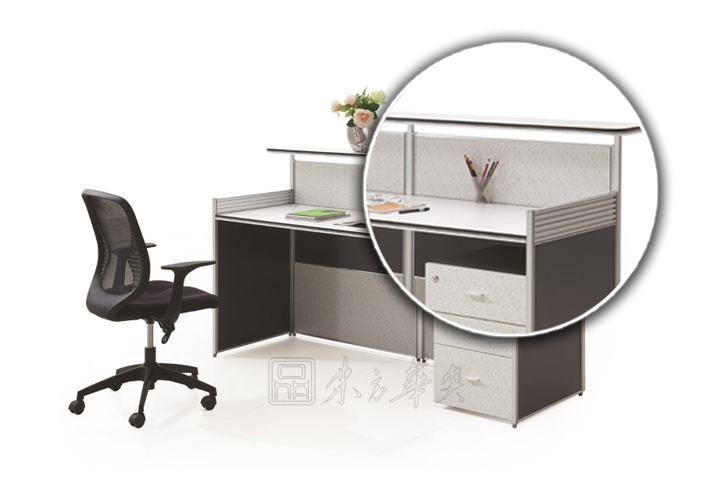 ※  上图为前台背面图,直型台面,简洁而富现代感的外观,搭配多元化的桌面及配色设计,令空间富有灵动的变化;精致、稳固的金属元素是其品质的追求;可以轻松、经济地设计和配置属于您时尚的工作环境。